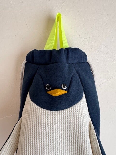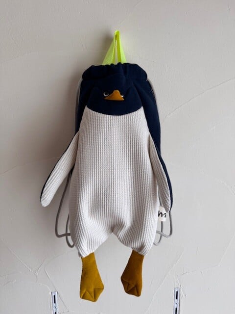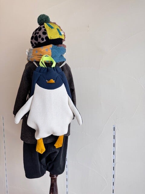 ぬいぐるみのように柔らかいニット生地で作りました。