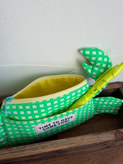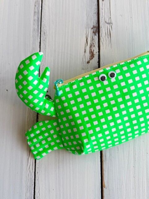 カニポーチ(蛍光グリーンチェック)イエローファスナー