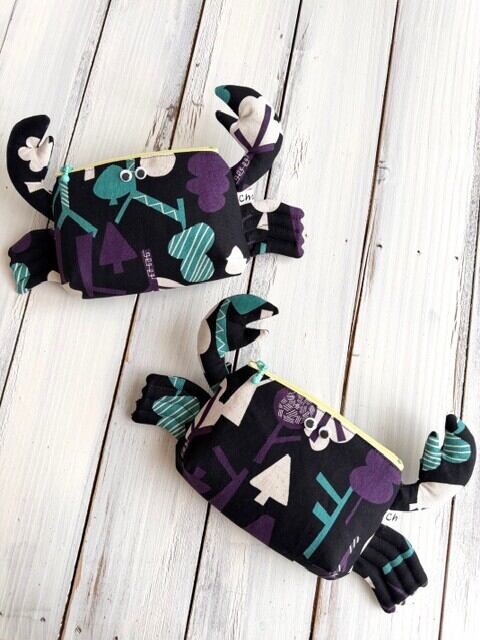 カニポーチ(ブラック×森柄)
