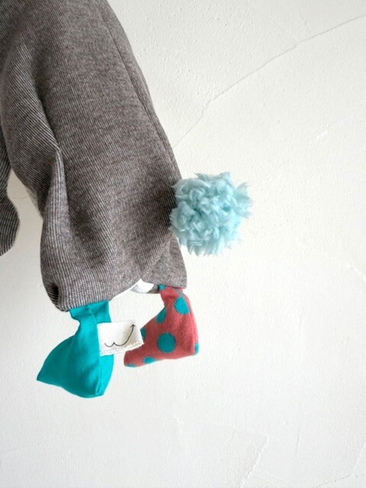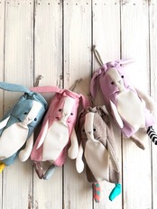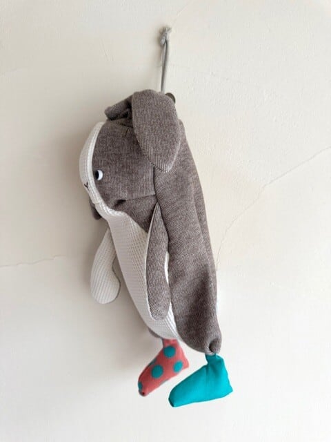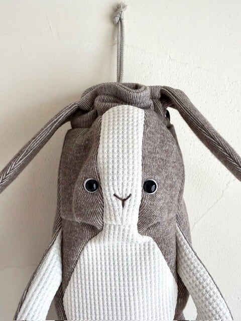 ぬいぐるみのように柔らかい肌触りの良いニット生地で作りました。